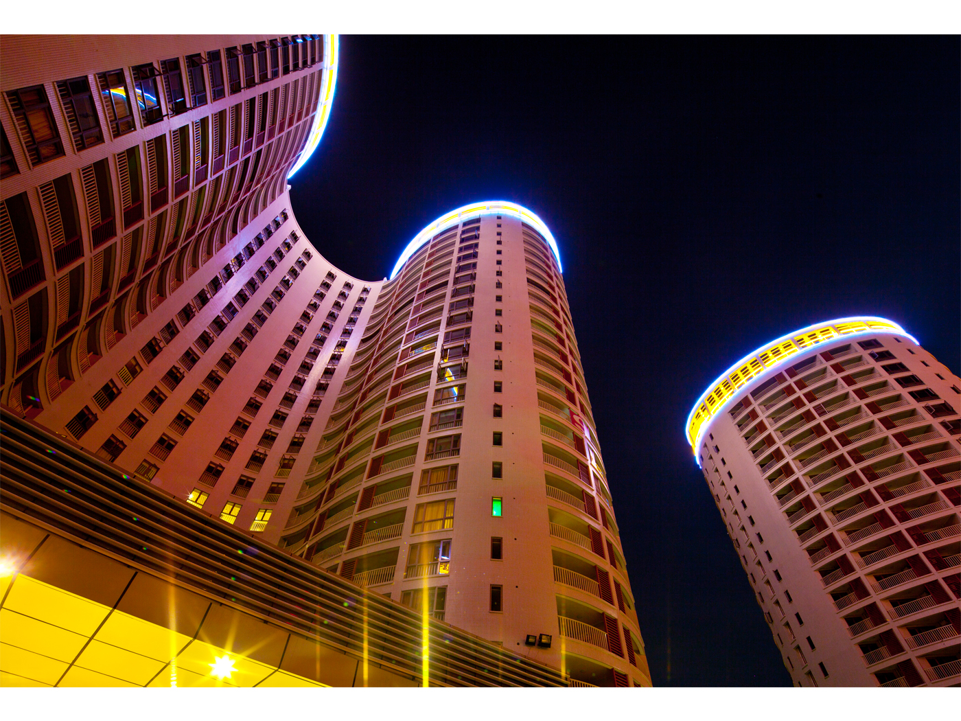 總體布局:小區內建筑沿圓弧型攤開布局,為每一棟建筑最大地爭取海景。一條線型中央綠軸貫穿東西,各種景觀節點穿插其間,使一、二期小區如環般相扣。建筑由南至北,由低至高,保證二期公寓觀海的視線。另外,二期公寓以點式布局,一方面可以減少對城市道路的壓迫感,留給北側地塊更多的視線,一方面更利于整個小區的通風。