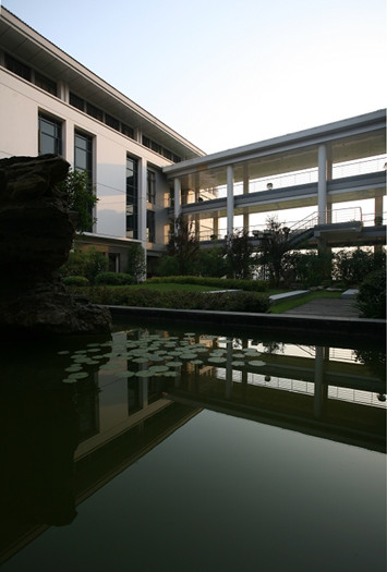 規(guī)劃從整體空間環(huán)境出發(fā),強(qiáng)調(diào)建筑整體與自然環(huán)境的和諧統(tǒng)一,在可持續(xù)發(fā)展與開放建筑的設(shè)計(jì)理念指導(dǎo)下,對(duì)新時(shí)代行政中心設(shè)計(jì)提出了一種新的模式——分散呈網(wǎng)絡(luò)狀布局的單元組合式辦公建筑。設(shè)計(jì)充分利用新行政中心用地特有的自然地理優(yōu)勢(shì),對(duì)原有山形和水系進(jìn)行整合,將四套班子辦公分為四個(gè)組團(tuán),分別置于四個(gè)高地上,中心處為會(huì)議中心,各組團(tuán)以環(huán)廊連接,形成一個(gè)有機(jī)的整體。各組團(tuán)辦公用房都朝向南,以多層次的庭院相串聯(lián),并且引入周邊風(fēng)、林、山以及人文景觀,使行政中心融入?yún)^(qū)域地景,形成天、地、人合一的環(huán)境。